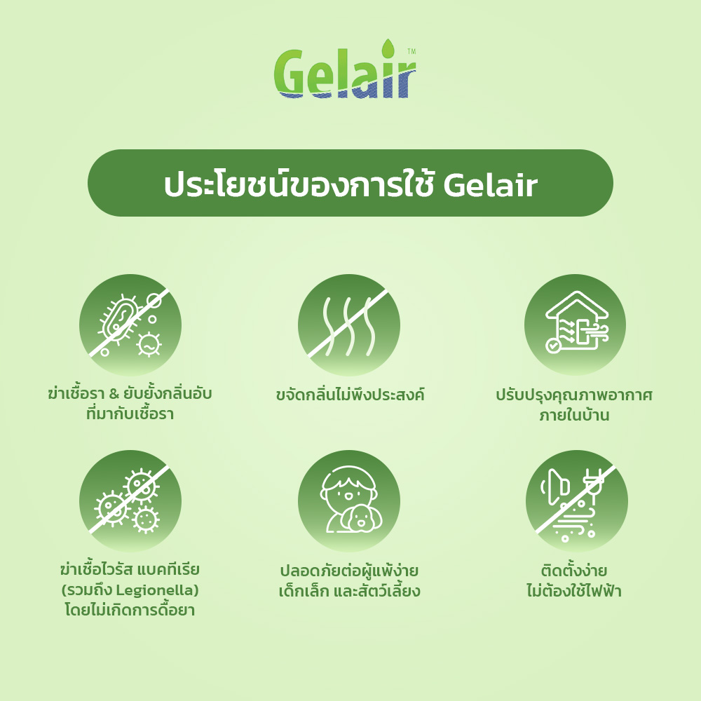 Gelair™ คือทางออกที่ง่ายที่สุดในการยับยั้งเชื้อราและแบคทีเรีย ที่สะสมอยู่ในเครื่องปรับอากาศและกระจายไปทั่วห้อง
